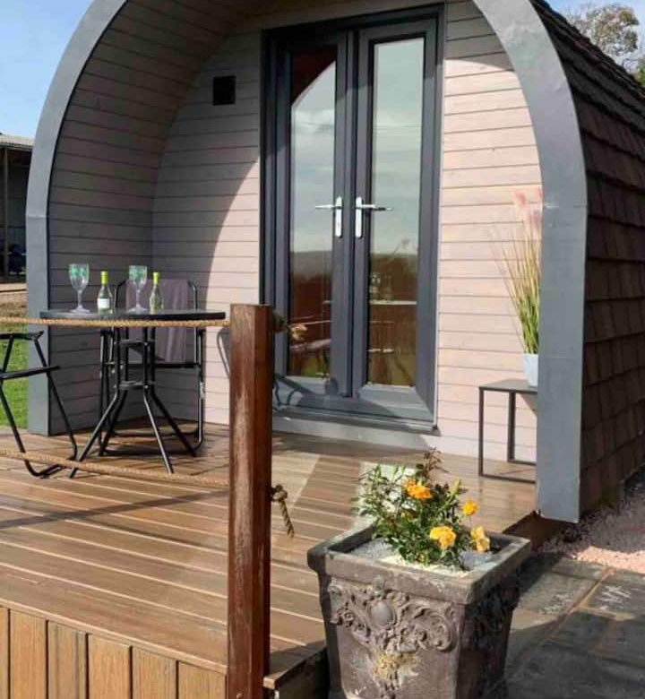 Plas Onn Isa Glamping Pod is located just 1.1 miles from Abergele, renowned for hosting I’m a Celebrity Get Me Out Of Here in Gwrych Castle, accessible by a short walk. Designed exclusively for adults over 18, the cosy pod can accommodate up to two guests, with no provision for pets. It offers underfloor heating, ensuring comfort regardless of the weather. The open-plan area includes a double bed with linen provided, a television, and a living space furnished with a table and chairs. The compact kitchen is equipped with a sink, small fridge, microwave, kettle, toaster, and essential supplies such as tea, coffee, sugar, and UHT milk pods. However, guests should bring their own washroom towels. It’s important to note that there are no facilities for car charging at the location.