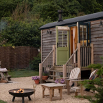 The cabin features an open-plan living area that includes a double bed, sitting area, and kitchenette. An additional bed settee is available for children if needed. There is a separate shower room for added convenience. A log burner within the cabin ensures cosiness during the stay. Outdoors, the decked area comes equipped with a BBQ and fire pit, perfect for enjoying the rural views.